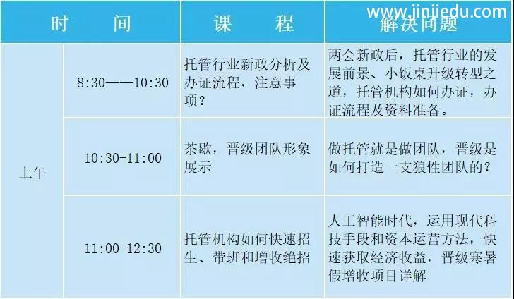 本次中国行通过互动吧抢占优惠名额,半天仅收取49元场地费,资料费,晋级总部专家将为您介绍托管行业国家政策,晋级项目介绍,托管行业盈利模式,下午为自由交流答疑、案例分享时间(投资人可自行选择是否留下)。