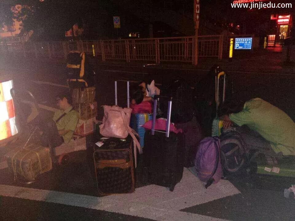 南宁会议告一段落,我们乘坐飞机去深圳,开始的时候飞机不能按时起飞,最近关于飞机的事故又比较多,大家心里都有些不安。晋级人真的很幸运,40分钟后飞机正常起飞,我们到深圳机场时已是凌晨2点,为了找到更便宜的酒店,我们乘巴士来到罗湖区,深夜兴哥和小龚老师走了三四个小时找房间,我们就在路口边上看行李。路边上光秃秃的,连坐的地方都没有,小伙伴们都席地而坐,因为太累了,一点儿形象也不顾的就这样睡着了,看着他们的睡姿,我的眼泪在眼眶里打转儿,一群90后,他们的举止真让人心疼,我在心里默默对他们说:你们安心睡吧,我来看行李!