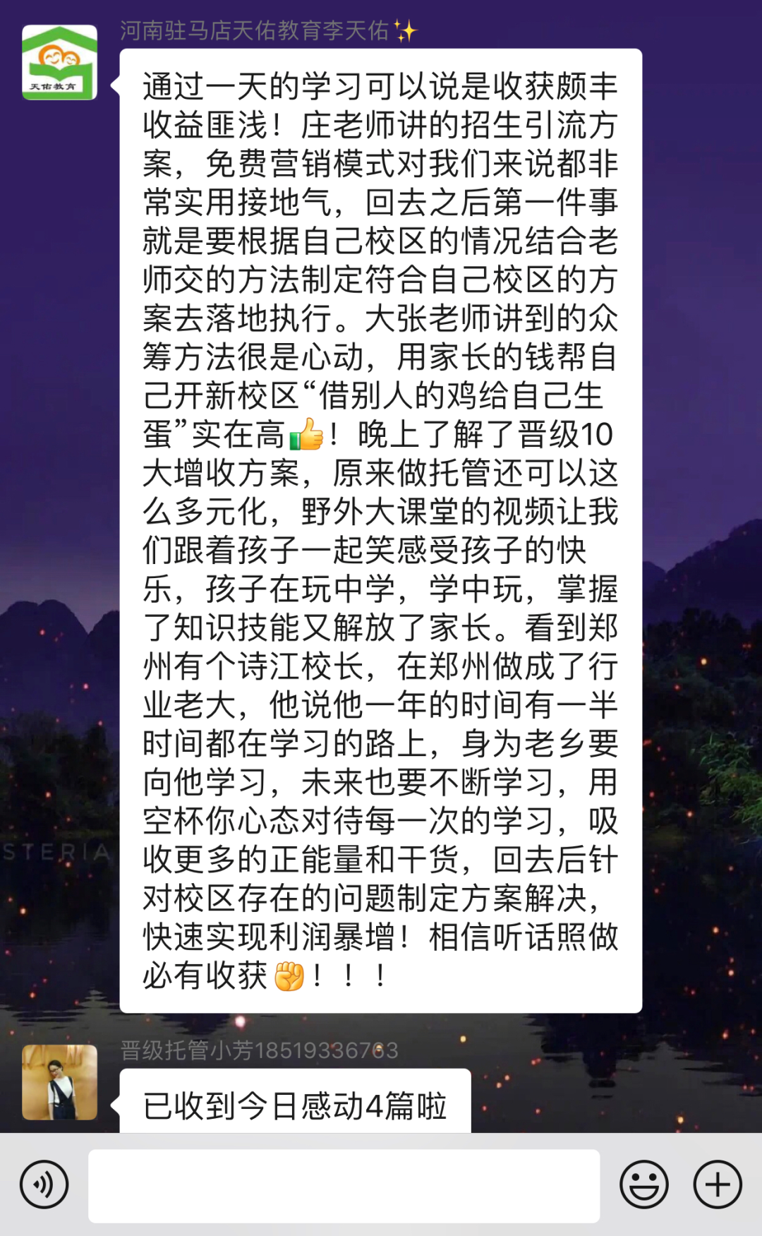 课程干货满满,参会校长们受益匪浅,通过理论知识武装大脑,运用实践证明自己,当天校区多元增收方案课程结束后,参会投资人们受益匪浅,大家开始集思广益来做的校区增收方案后,上台分享,学有所得并落实到行动中。