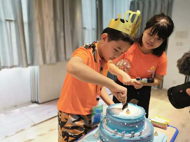 尽管各团队在比拼时互相较劲,但结束了游戏,孩子们互相都很有爱。今天的开营日还有个特殊的意义,那就是唐浩宸小朋友的生日。