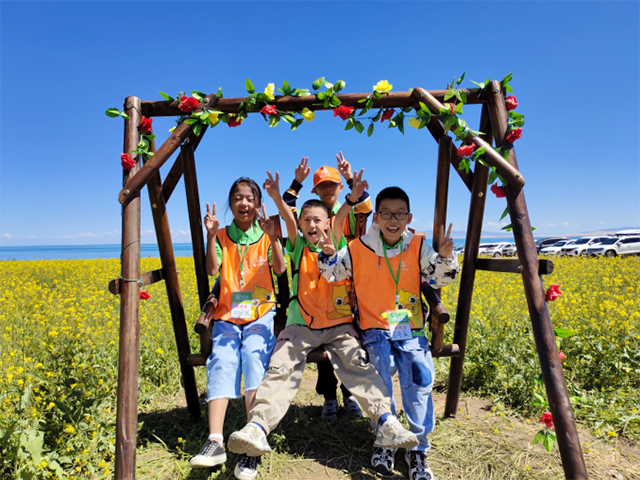 在这里,孩子们互相玩闹,同时学习知识必不可少,在这一碧万顷青海湖面和一望无际的草原,孩子们领略着多样地貌,观察多种生物,学习多元知识。