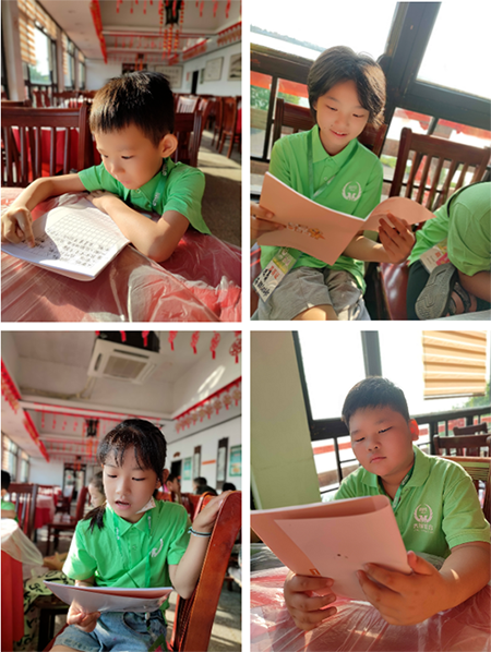 在等待早饭的过程中,小学员们自觉主动的将昨天的笔记拿出来,复习昨天老师讲课的要点,复习也是一种学习,孔子都说要温故而知新,先温故,吃完早饭后就开始知新了。