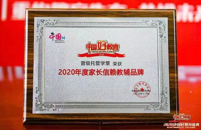 2020年,晋级托管学堂被中国网评为家长信赖教辅品牌
